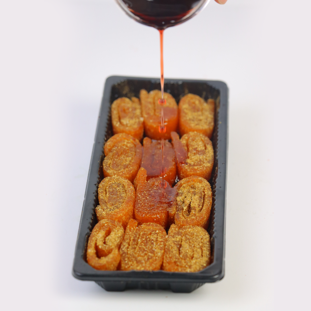 استمتع بلفائف قمر الدين الطرية ذات اللون الذهبي الشهي، مع لمسة من الصوص الخاص